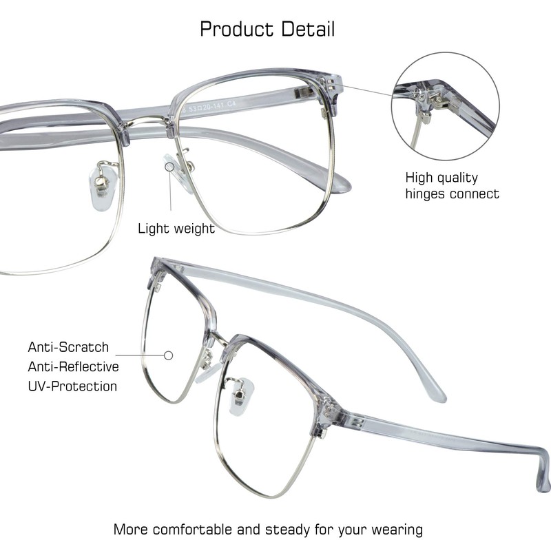 VisionGlobal Blue Light Blocking Glasses for Computer Reading, Anti Glare Lenses Help Reduce Eye Strain and Fatigue, for Women/Men (Clear Gray, No Magnification)