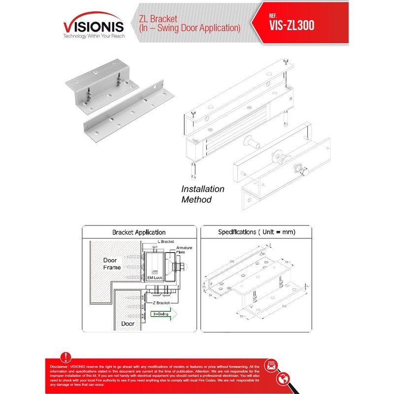 - (1) VIS-ZL300: L and Z Inswinging Bracket for 300lbs Magnetic Door Lock