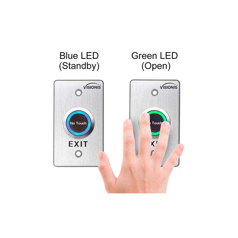 - (1) VIS-7029: Indoor Stainless Steel No Touch Infrared Request to Exit Button with Time Delay Mid Size NO, COM and NC Outputs