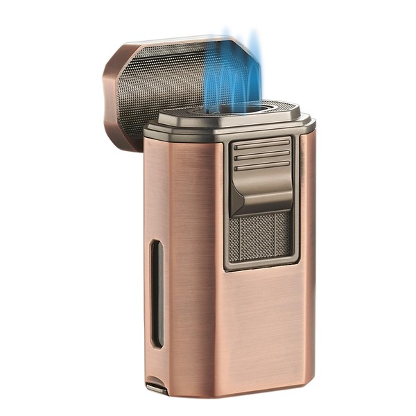 • QUAD FLAME LIGHTER: A quad torch that emits four powerful and wind-resistant flames. With a double action ignition, simply flip the lid and push the side button to the flames. Not only can it be ready to use to light your cigar, but it is a great tool for camping or traveling outdoors.