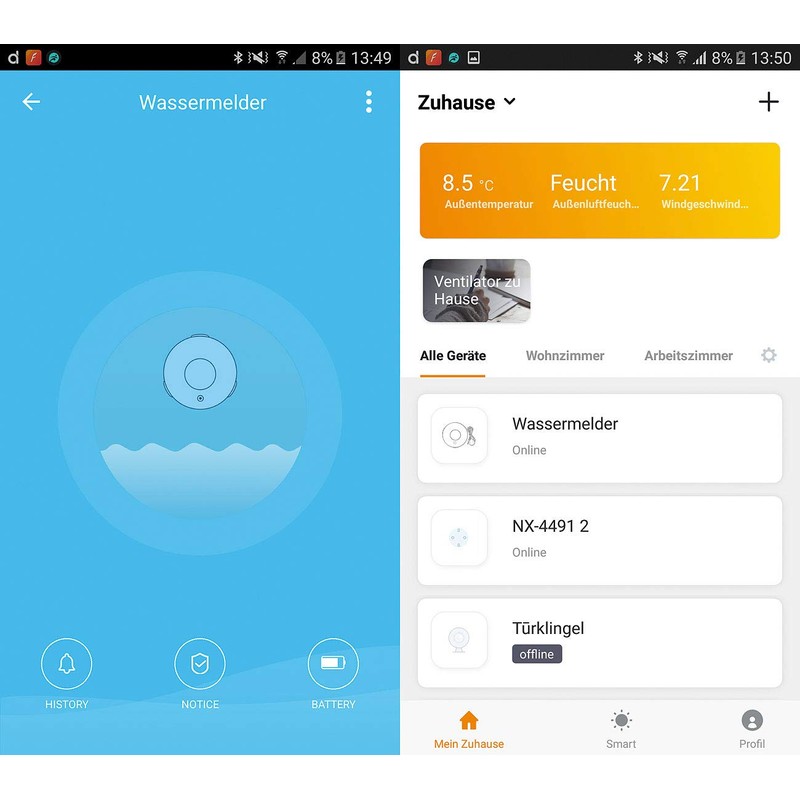 Water detector for your XMD alarm system: Pair your new sensor e.g. with the app-compatible siren of the XMD series - very conveniently in the free app! So you can easily expand your alarm system.