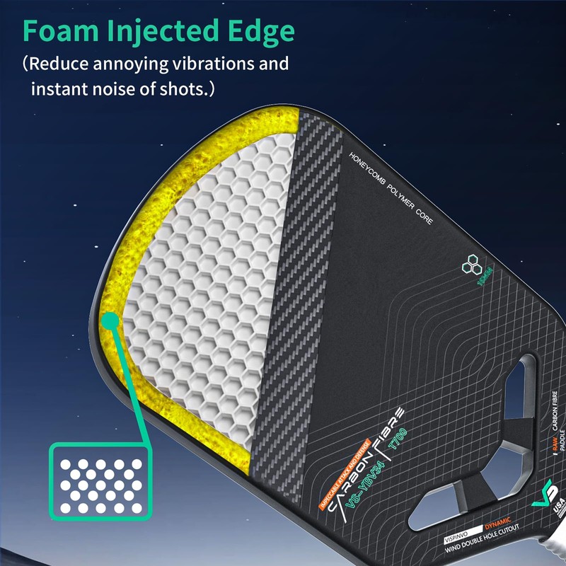 - 【Thermoformed Technology & Foam-Injected】: This carbon pickleball paddle was built using thermoformed technology and foam is injected into the edge of the racket to give it better strength and stability, so that you are more comfortable in aggressive matches.