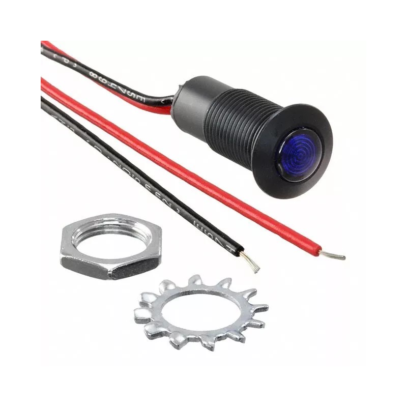 LED Panel Mount Indicator Blue Fresnel 3V 20mA Wire Leads - 12" (304.80mm)