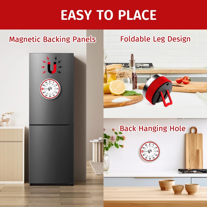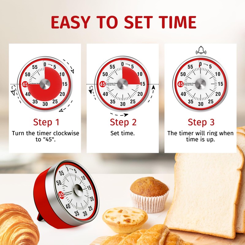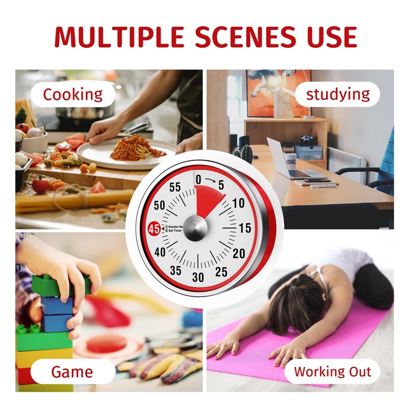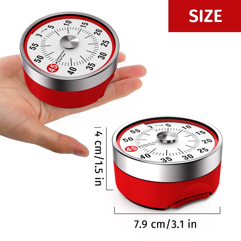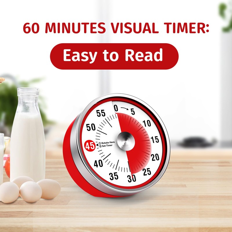 - 【60 Minute Visual Timer】This kitchen timer's Maximu set up timer is 60 minutes.Simply turn the timer clockwise to expand the bright red disk making it easy to see the time count down visually.