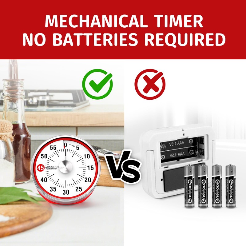 - 【No Battery Required and Easy Operation】 The manual countdown timer doesn’t require any batteries, it is energy saving and eco-friendly. Just wind it up and set time, it will work.