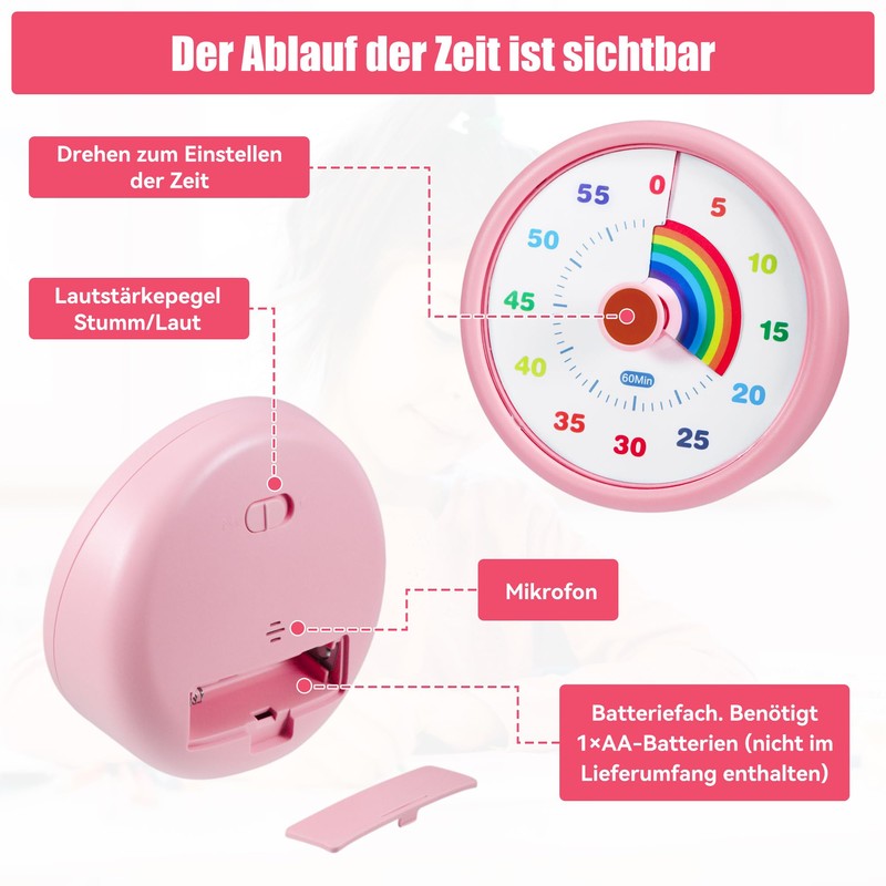 - Time management: the children's visual timer is powered by 1 AA batteries (not included). Time clock children, farewell to procrastination and develop a sense of time, especially children can organise their time independently, avoiding constant memories or intervention of parents.