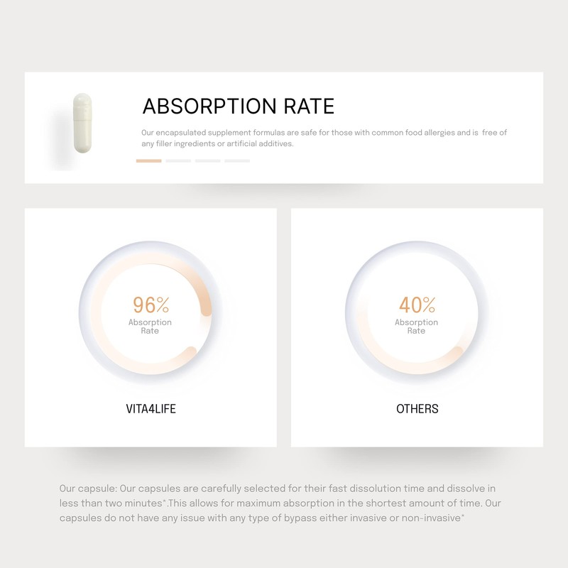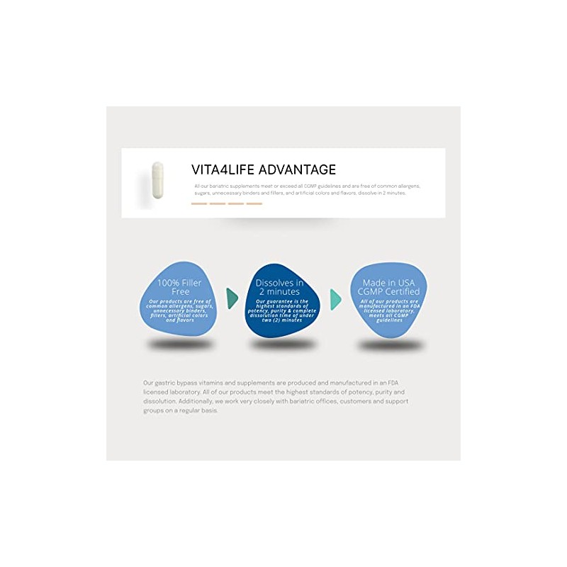 Vita4Life! Multi-Plus Formula - Quantity: (360 Fast Absorbing Capsules for all types of by-pass and bariatric procedures). Our Multi-Plus Formula provides essential micronutrients in both fat and water soluble vitamins and amino acid chelated minerals. We have included a high concentration of iron, B-complex vitamins, and folic acid.