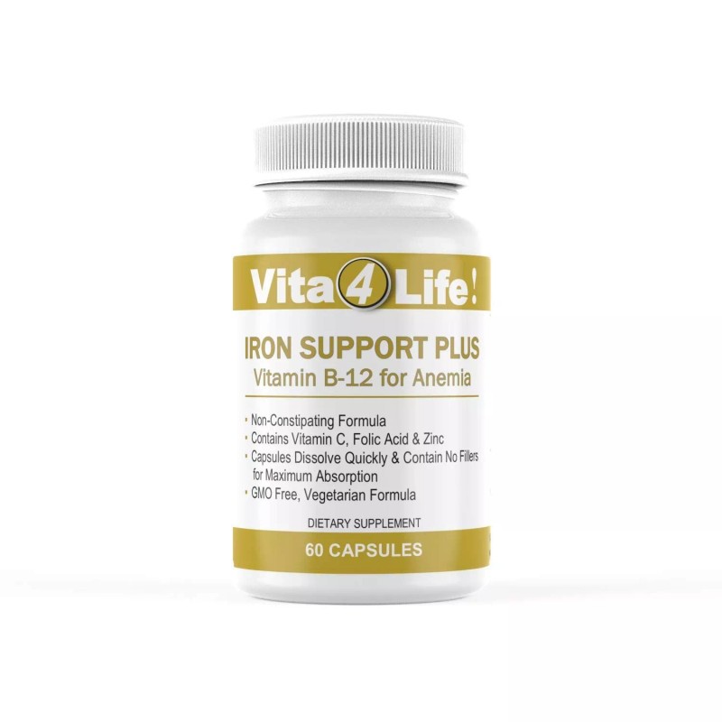 Vita4Life Iron Support 'Plus' Vitamin B-12 - Bariatric Supplement for Anemia - 60 Count