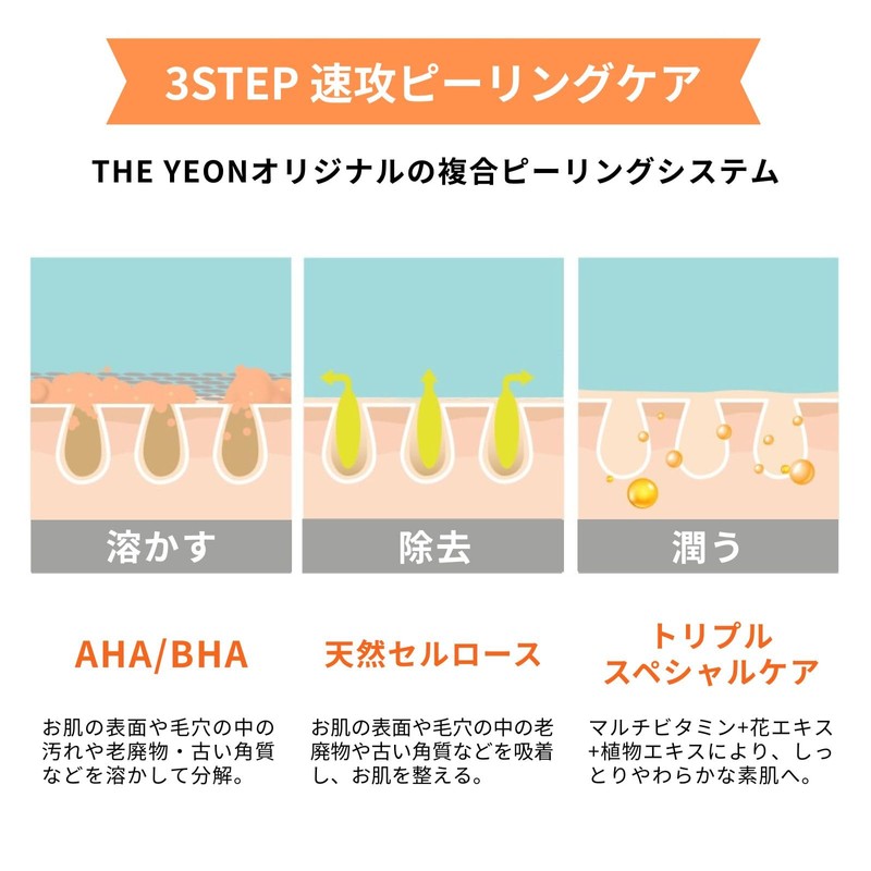 • 【古い角質や毛穴汚れがゴソッと取れる】 AHA+BHA+天然セルロースのトリプル作用で、肌表面の古い角質や毛穴に溜まった老廃物がどんどん分解。ポロポロ取れていき、まるで生まれ変わったようなつるんとなめらかなタマゴ肌に!気になるくすみやゴワつき・毛穴の黒ずみなどのホームケアにおすすめです♪