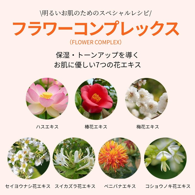 • 【保湿・トーンアップ・鎮静成分をさらにプラス】 ハルラボンエキスに加え、保湿やトーンアップ効果のあるハス・椿・梅などの7種類のお花エキス、お肌のバリア効果を高めてくれるツボクサ・カモミールなどの4種類の植物エキスもプラス。より健康的で透明感&弾力のあるふっくらお肌へ!