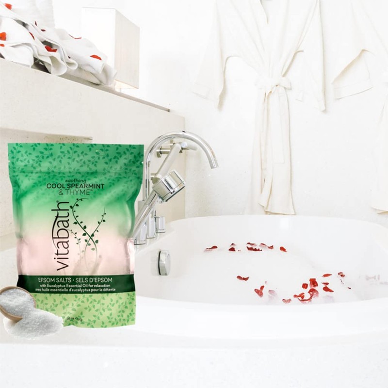 Vitabath Cool Spearmint & Thyme Epsom Salts Relaxing Therapeutic Aromatherapy & Nourishing Skincare - Muscle Soreness & Body Ache Soothing Soak for Women & Men - 36 oz