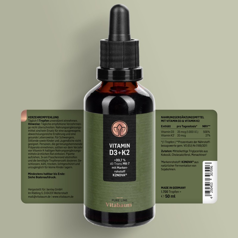 - For a good feeling: our vitamin D3 K2 drops are lactose-free, gluten-free and contain no unnecessary additives such as fillers, dyes, stabilisers or release agents.