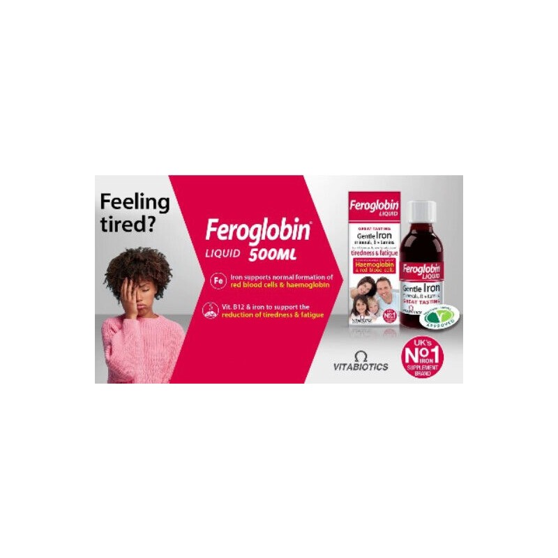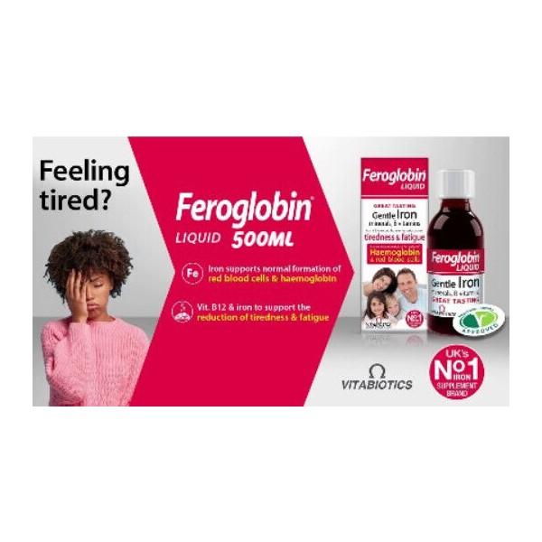 - FEELING TIRED? - Feroglobin contains vitamins B6 & B12 which contribute to normal energy release plus iron and folate which contribute to the reduction of tiredness and fatigue.