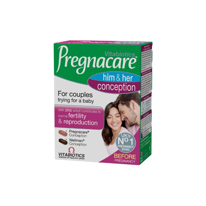 The Vitabiotics Pregnacare His & Her Conception 60 tabs formula is a dietary supplement that combines both male and female fertility enhancement.