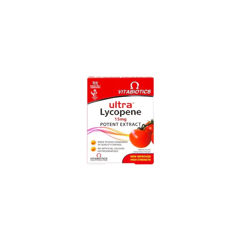 Each Ultra Lycopene tablet from Vitabiotics contains 430mg of Tomato Extract which provides 15mg of pure Lycopene