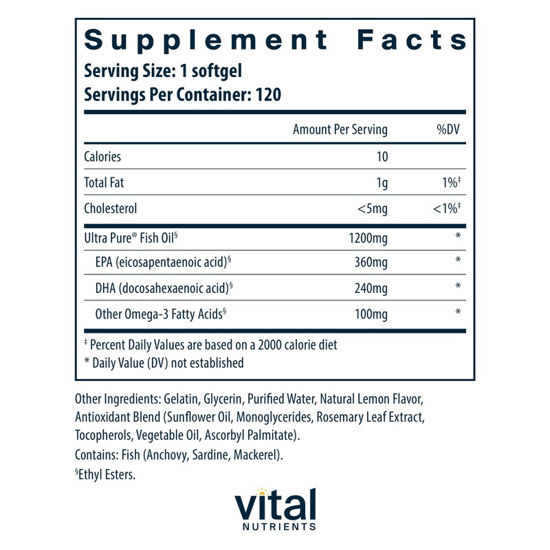 Vital Nutrients Vital Nutrients Ultra Pure? Fish Oil 700 | Supports Heart, Brain, and Joint Health* | Sustainably Sourced High EPA & DHA Omega-3 Fatty Acid | Lemon Flavor | Gluten, Dairy & Soy Free | 120 Softgels