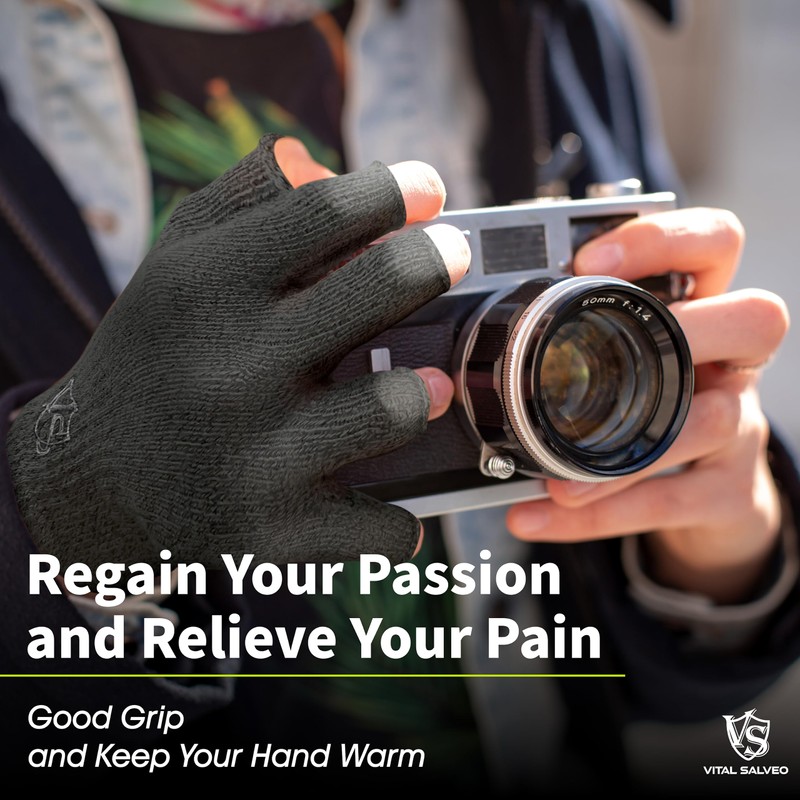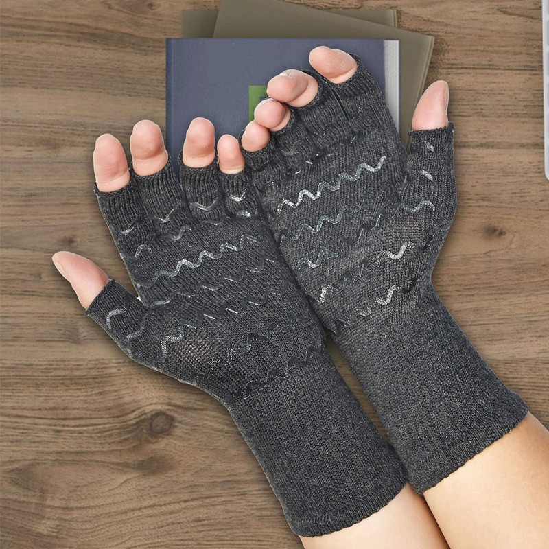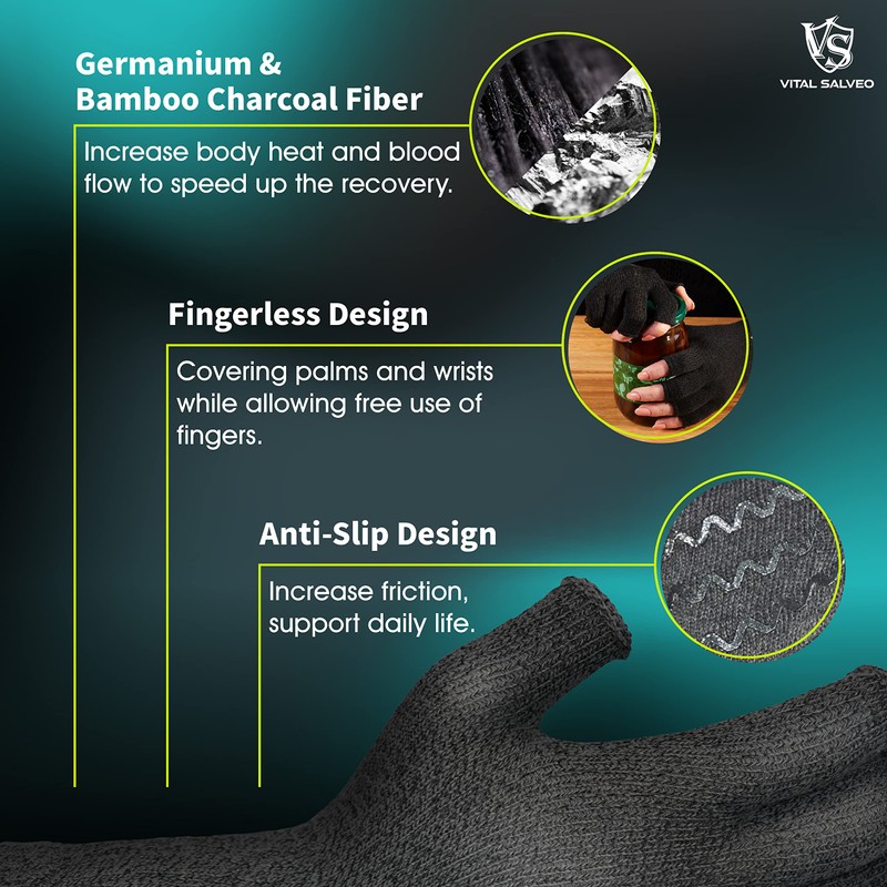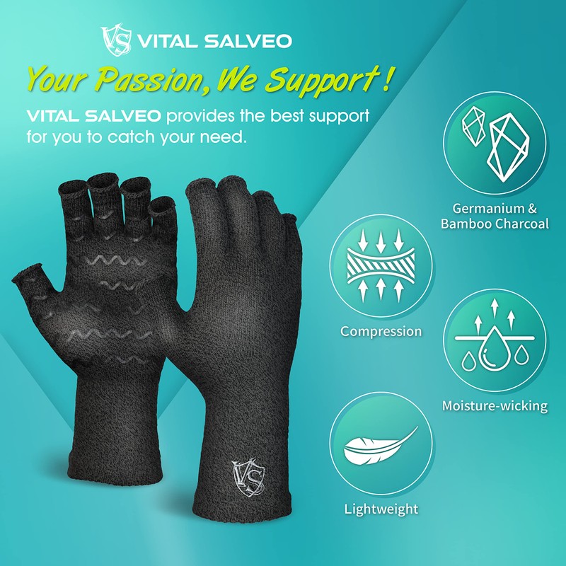 Vital Salveo-日常的な使用で快適な圧迫サポートを提供する 男女兼用すべり止め付き フィンガーレスまたはハーフ フィンガーレス 指あり圧迫手袋(1組)ダークグレーXL