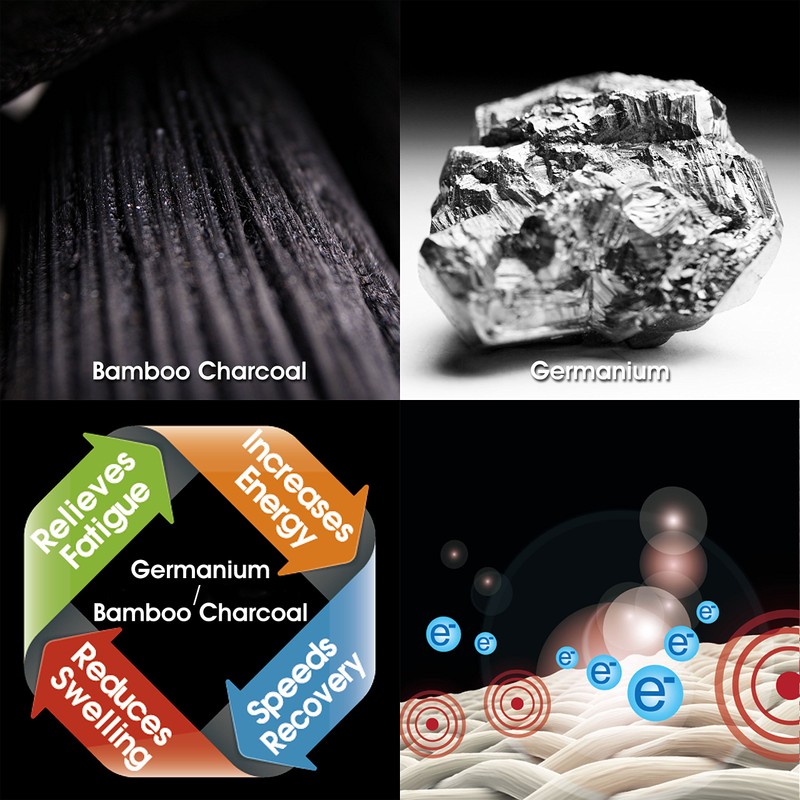 - Uses innovative special fibers--special fibers that contain bamboo charcoal and germanium, which increases blood flow during use and helps you exercise more actively