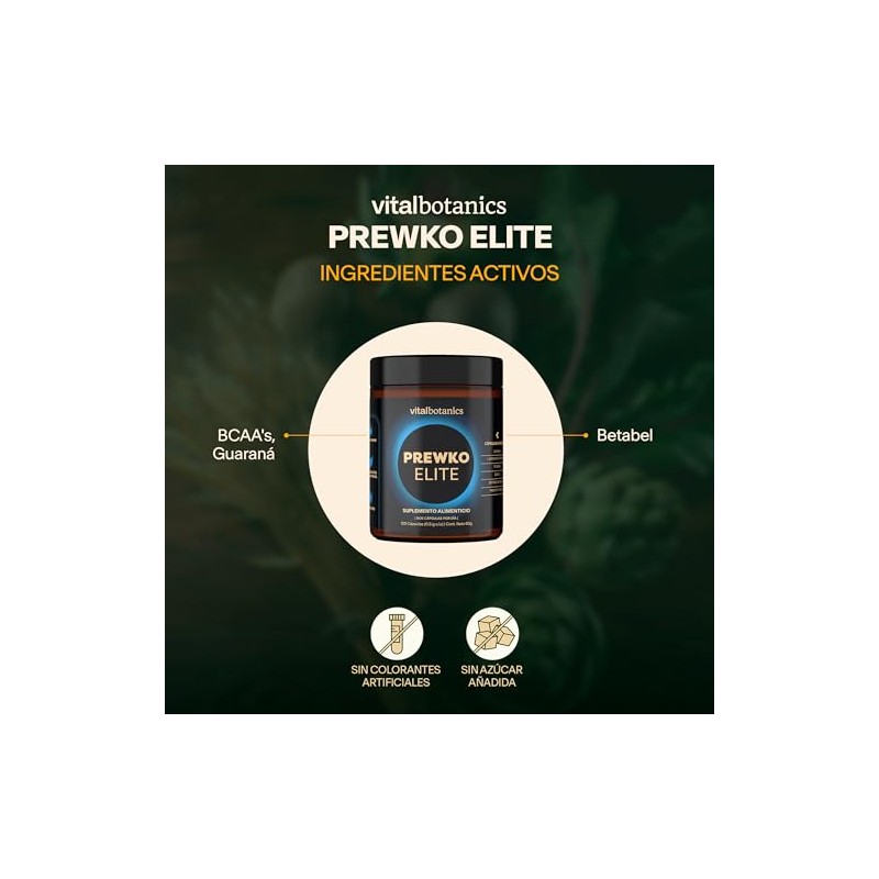 VITALBOTANICS - Preworkout Elite 120 Cpsulas - Pre Entreno - Suplemento Alimenticio con BCAAs, L-Carnitina y Extractos Naturales - Energa