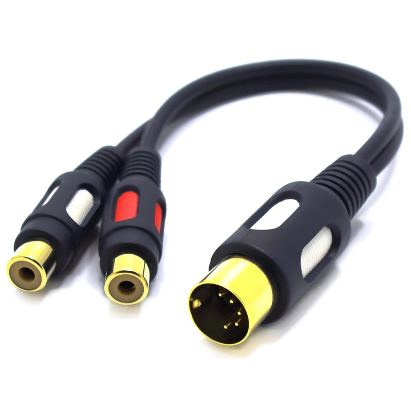 - 5-pin DIN male to 2x RCA dual RCA female: practical adapter for converting a DIN output into RCA sockets. Ideal for connecting RCA cables to classic DIN audio devices.