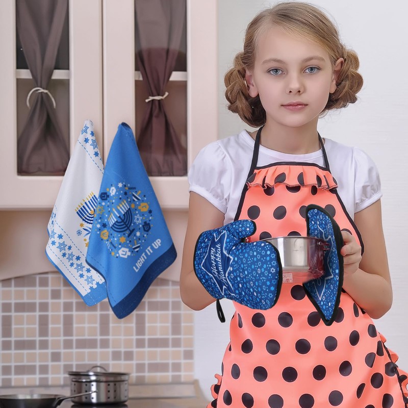 - Generous and Functional Hanukkah Hostess Kitchen Set: this kitchen towel set with oven mitts includes 4 Hanukkah themed towels, one pot holder, and one oven mitt, meeting your kitchen needs; The substantial pack allows you to have replacements or share them with loved ones, making this a practical gift or housewarming present; Ideal for daily or holiday use, these tasteful Hanukkah decorations blend into various kitchen aesthetics