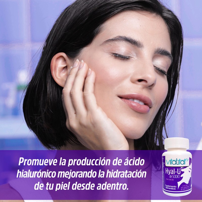 Vitalitat - Hyal U | Suplemento que promueve la producción de Ácido Hialurónico | Bote con 60 cápsulas de 400 mg c/u | Tratamiento para 2 meses | Tu piel y cabello radiante | Cuida de articulaciones, huesos y uñas