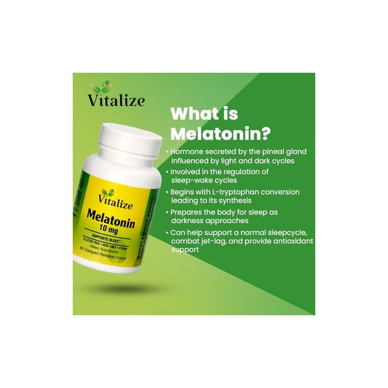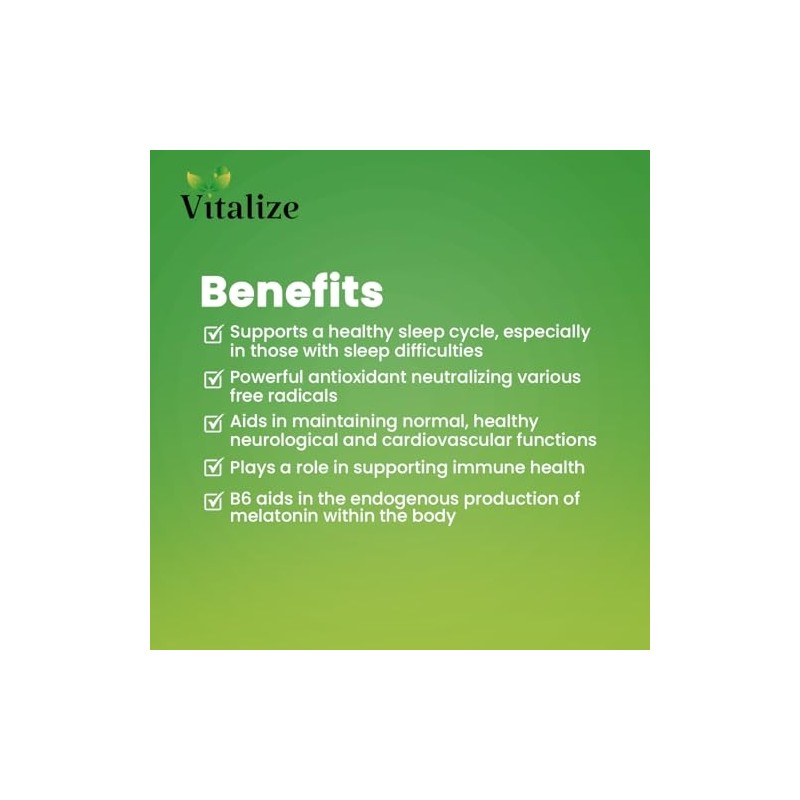 Experience a balanced blend of nature and science with Vitalize Melatonin capsules. Perfect for adults, these capsules enhance both sleep quality and immune health.