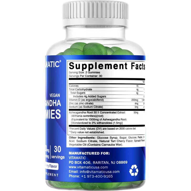 • DELICIOUS NATURAL TART CHERRY TASTE of Vitamatic Ashwagandha Gummies - Avoid consuming Large Ashwagandha Capsules, Tablets or Pills which gives unpleasant after taste & can not go down easily