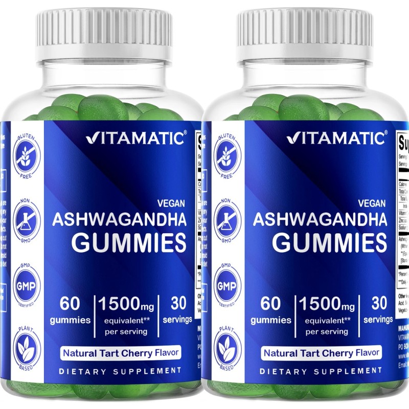 Vitamatic Ashwagandha Gummies 1500mg Serving 60 Vegan Gummies- 2 Pack