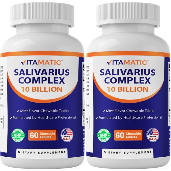 Vitamatic Salivarius Complex 10 Billion Mint Flavored Tablet - 60 Count-2 Pack