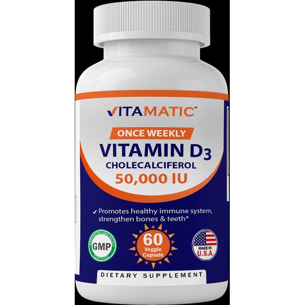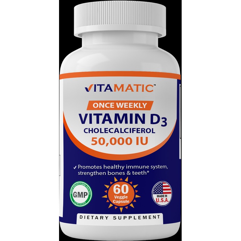 Vitamatic Vitamin D3 Weekly Dose 50,000 IU (Cholecalciferol) 60 Veggie Capsules