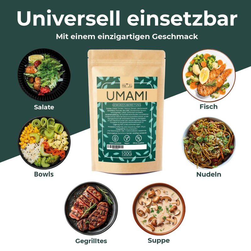 About this item Intense, hearty spicy taste: our umami spice brings the fifth taste to your kitchen and gives your dishes a deeper, full-bodied spice that enhances the natural taste of food. Versatile and easy to use: ideal for soups, sauces, vegetables, pasta, rice dishes, salads or even as a table spice - for anyone who wants to refine their meals with an umami-rich accent. 100% natural ingredients: free from artificial flavour enhancers, dyes or additives - for an authentic and healthy taste that takes your dishes to a new level. Perfect combination of sea salt, mushrooms and spices: our special blend contains ingredients such as porcini mushrooms, tomatoes and spices that enhance the natural umami intensity of your meals. Fresh and aromatic packaging: the resealable packaging protects the spice from moisture and preserves the aromas, so you can enjoy the full taste at any time. Handmade with the heart of a German start-up: We are a young company specialising in the development of vegan spices, which are lovingly handmade and bottled in collaboration with social institutions - for sustainable enjoyment with social added value.