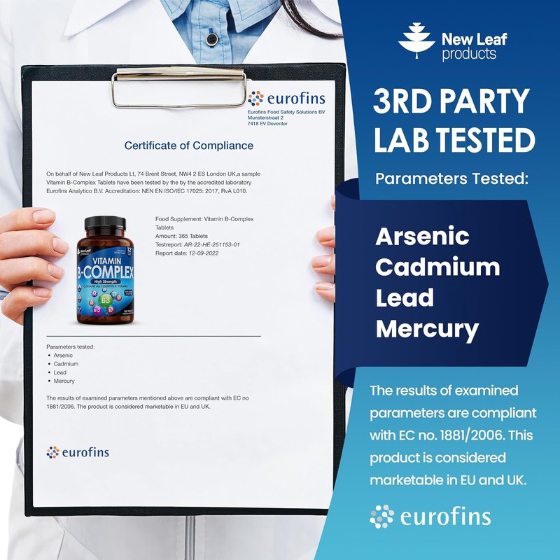 - THIRD PARTY LAB TESTED - Each ingredient is quality tested before our manufacturing process begins, once completed every batch of our b vitamin complex tablets undergoes further rigorous quality testing. Our super b complex supplements have been 3rd party tested for heavy metals and unwanted compounds by UK & Europe's largest testing facilities (Eurofins) The lab is UKAS accredited according to ISO/IEC 17025:2017