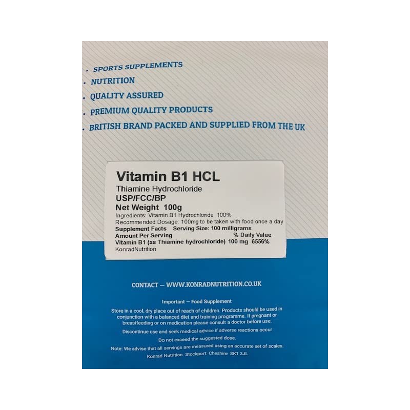 Vitamin B1 Powder Thiamine Hcl 100g Konrad Nutrition