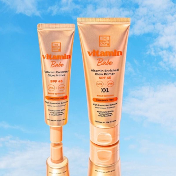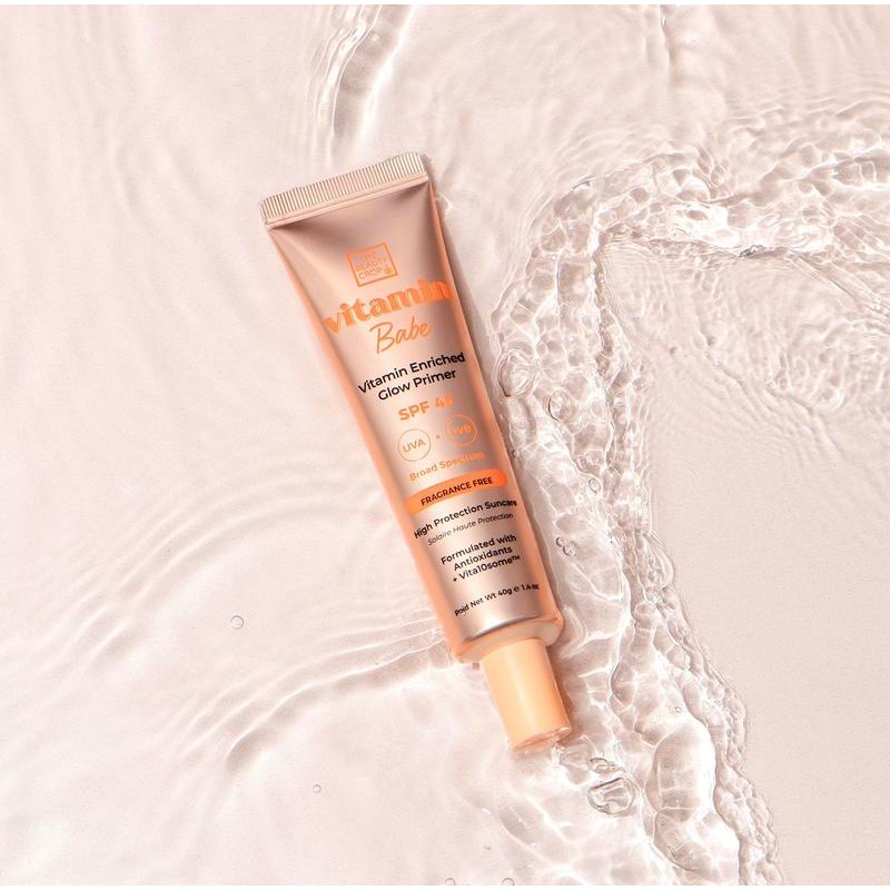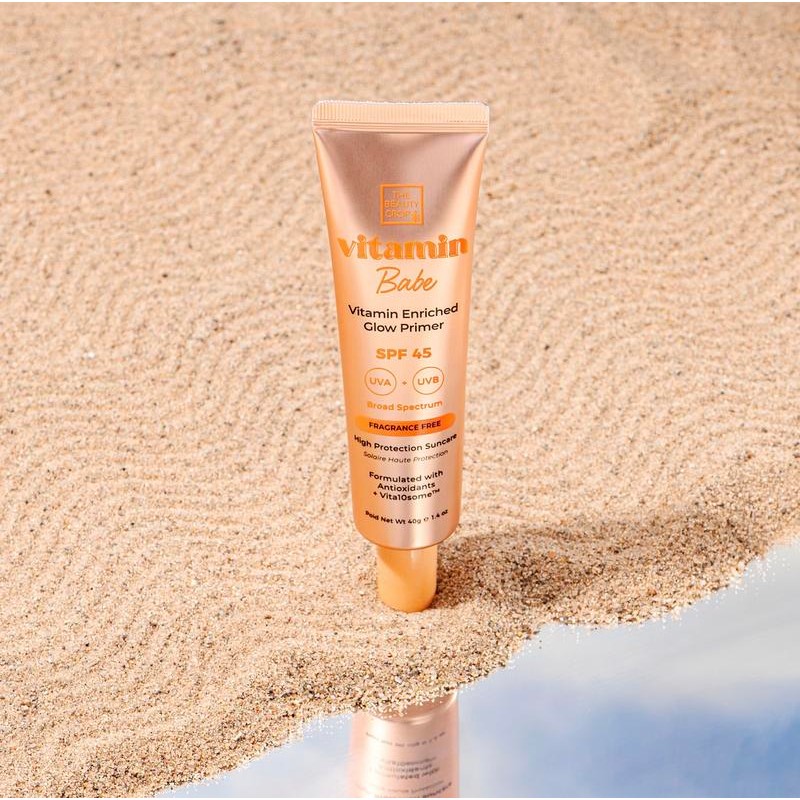 Vitamin Babe SPF45 Sunscreen Primer An everyday skin essential that primes, moisturise and provides protection from photoaging caused by UV rays, pollution & blue light. Enriched with Vita10someTM which is a complex of 10 Vitamins (Vitamin C, E, B5, F, H, A, B6, B9, B1 and B12) to revitalize, nourish and soothe the skin. Always apply sun protection generously, 15 to 30 minutes before sun exposure. Any less, radically reduces the protection effect. Even sun protection with high SPF does not grant full protection. Avoid midday sun. Reapply product every 2 hours or after extensive sweating, swimming or towel drying. Keep product out of reach of children. Avoid contact with eyes