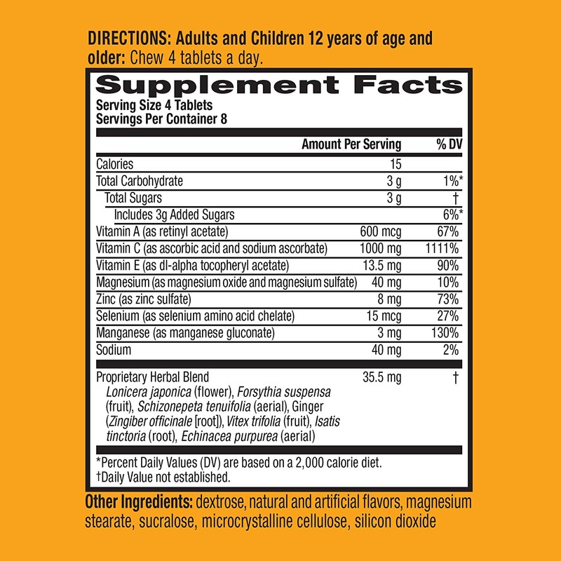 1000 mg of Vitamin C and 13 vitamins, minerals, and herbs, including