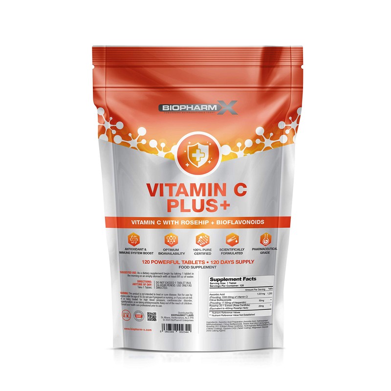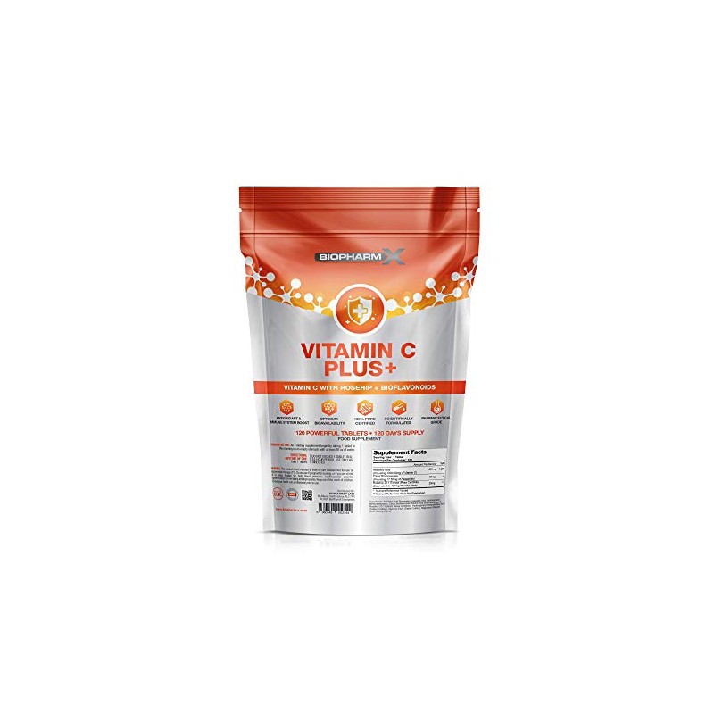 Vitamin C 1000mg Tablets + Rosehip & Bioflavanoids (4 Month Supply) 100% Pure Certified Ascorbic Acid - Suitable for Vegetarians & Vegans - Manufactured in The UK by BioPharmX