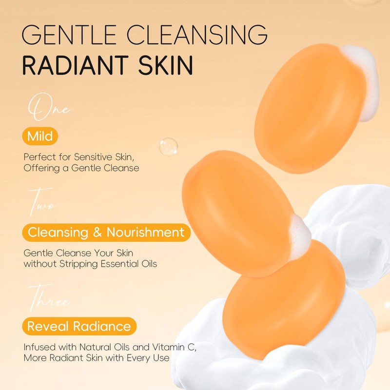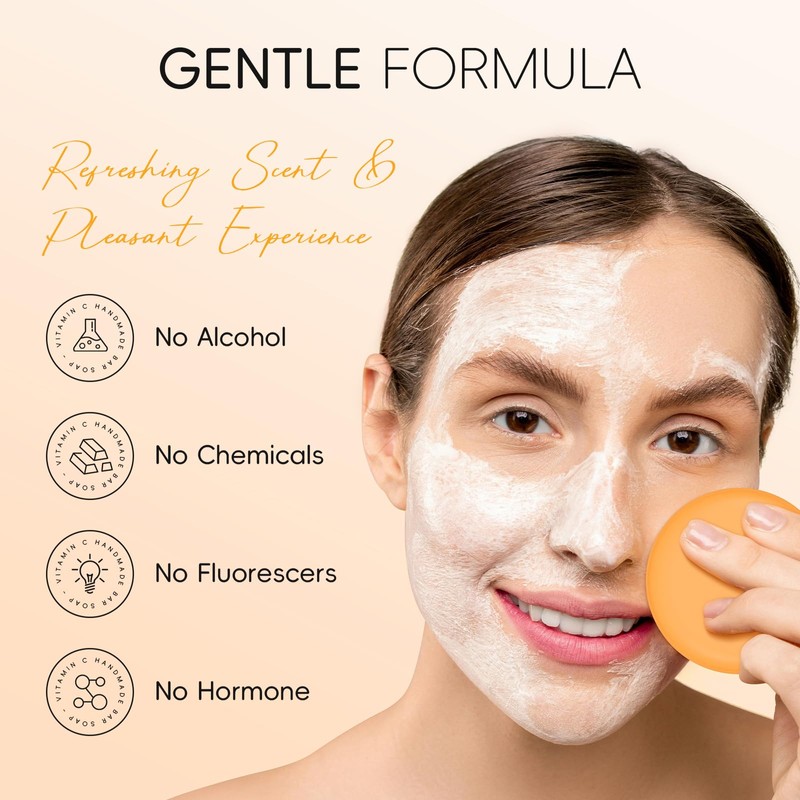Vitamin C Handmade Soaps, Pack of 3, 90 g Soap with Vitamin C, for Deep Cleansing, Brightens, Moisturises & Nourishes the Skin (Orange)
