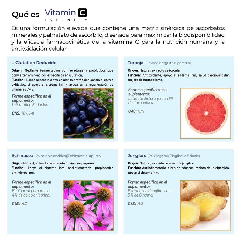 VITAMIN C INFINTIY GLUTATION 200 capsulas (770mg por porcion) Complejo de Vitamina C con Glutation, Zinc y Flavonoides, by Eternal Nutrition - Ingredientes Naturales Premium de USA