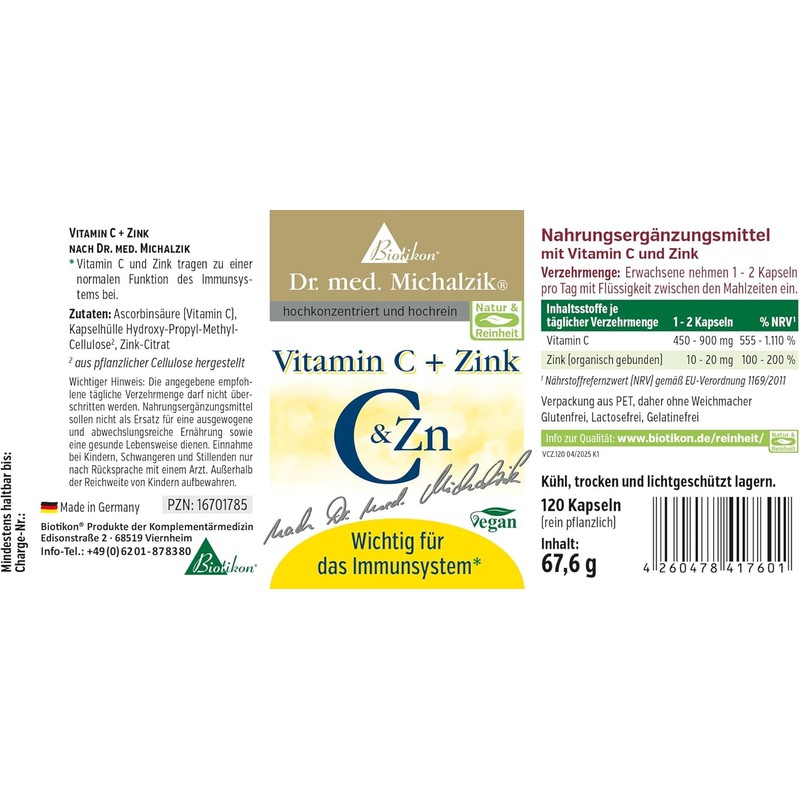 Vitamin C + Zinc According to Dr. Michalzik - No Additives - From BIOTIKON®