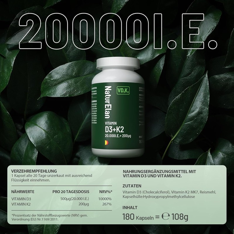 - Super value vitamin D3 K2 high dose capsules: take 1 capsule each, each D3 K2 capsules high dose contains 20,000 IU vitamin D3 and 200 μg vitamin K2 (it is recommended to take it every 20 days), if you have a deficiency of vitamin D3, please consult your Do.