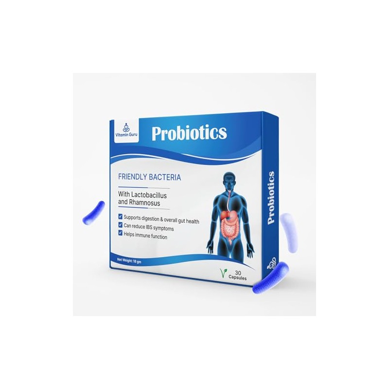 Vitamin Guru Probiotics, Friendly Bacteria Capsules with Lactobacillus and Rhamnosus, 30 Capsules, Net Weight 18 gm