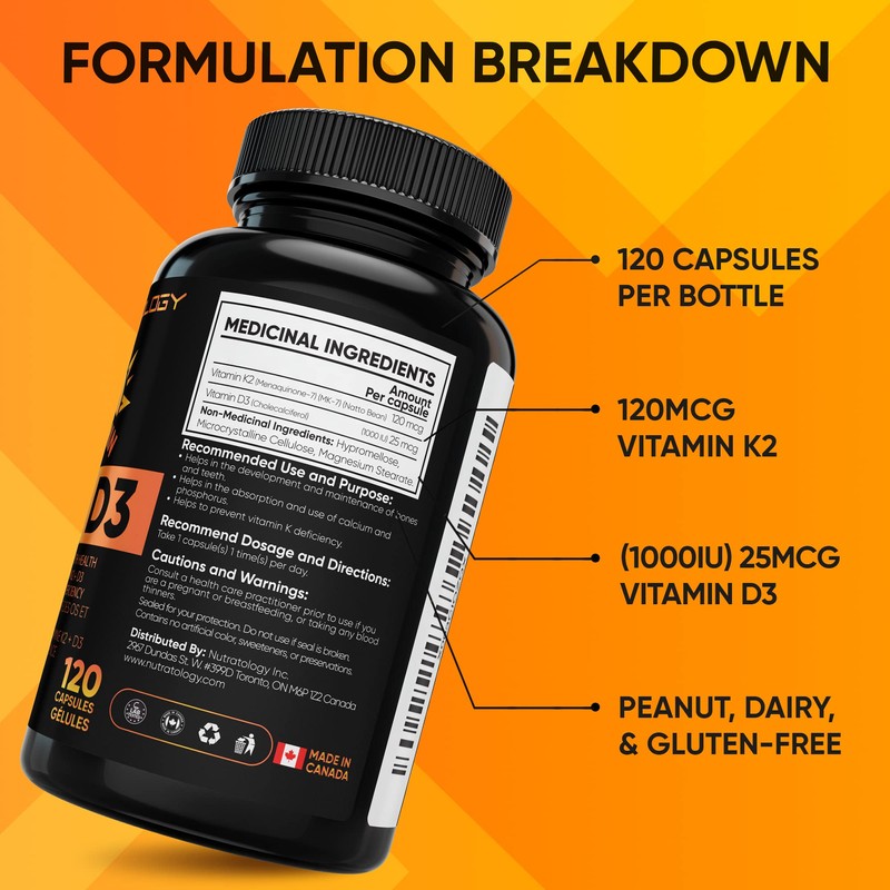 - Maximum Potency - Nutratology's Vitamin K2+D3 has the highest potency per capsule on the market! Formulated with MK-7 for the best results!