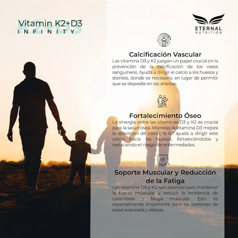 💊 VITAMIN K2+D3 Infinity Liposomal es un suplemento premium de alta absorción que combina tres ingredientes clave para la salud ósea, cardiovascular e inmune: