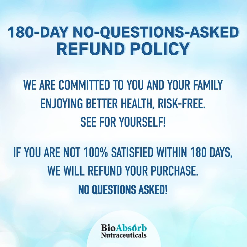 - 100% MONEY BACK if you aren’t completely satisfied. You do not even have to return the empty bottles!