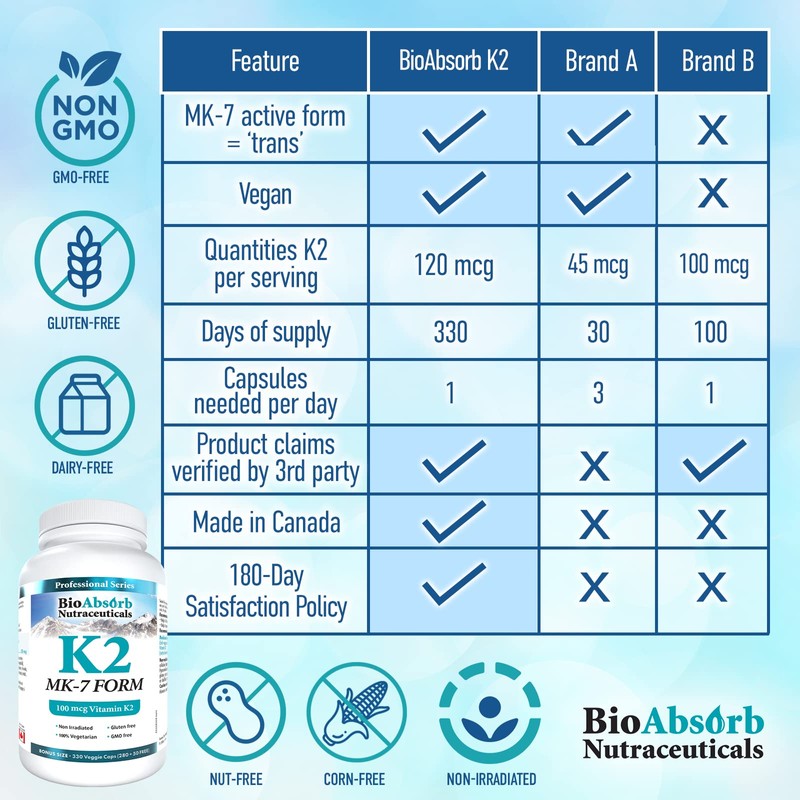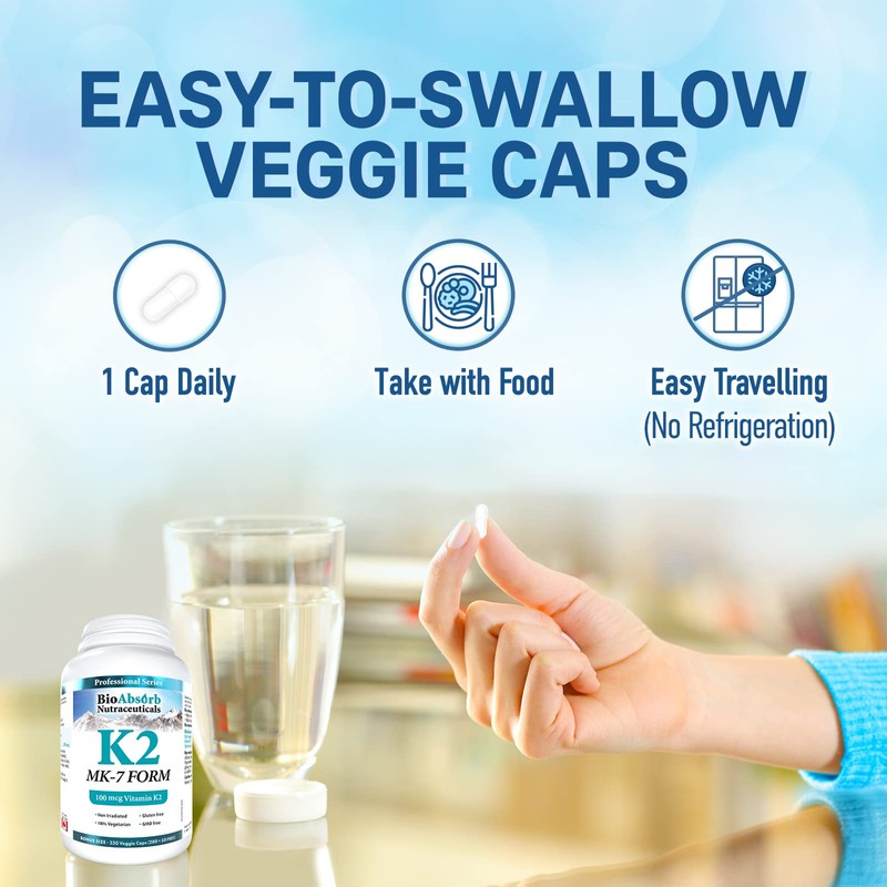 Vitamin K2 MK-7 Form Supplement. 100 mcg. 330 Veggie Capsules. 330-Day Supply