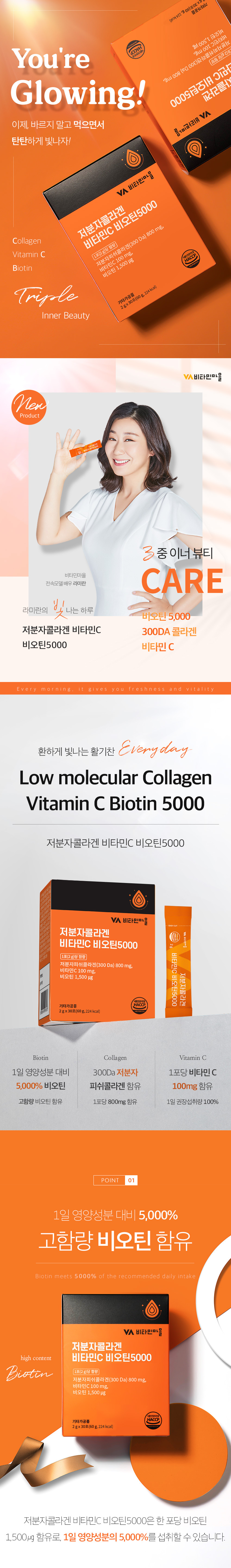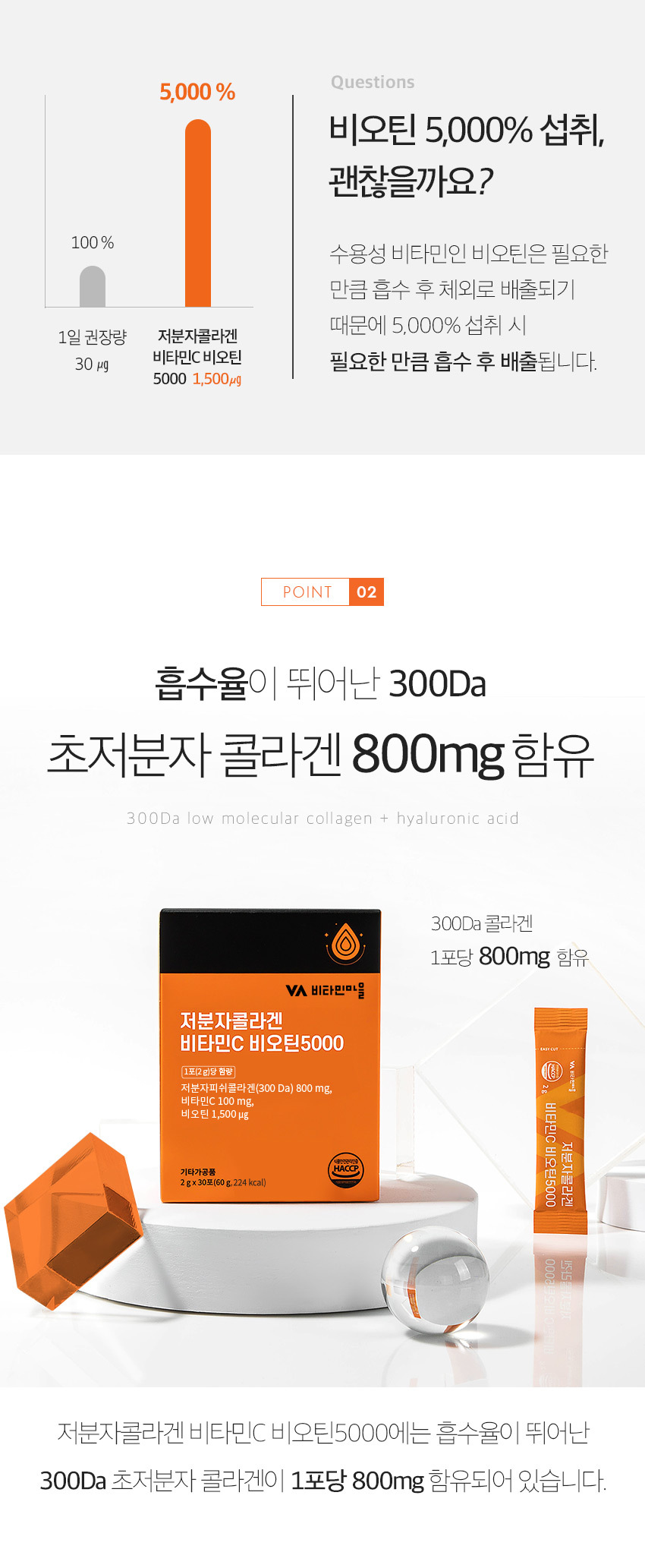 비타민마을 비오틴5000 저분자 피쉬 콜라겐 펩타이드 비타민C 8박스 총240포 8개월분