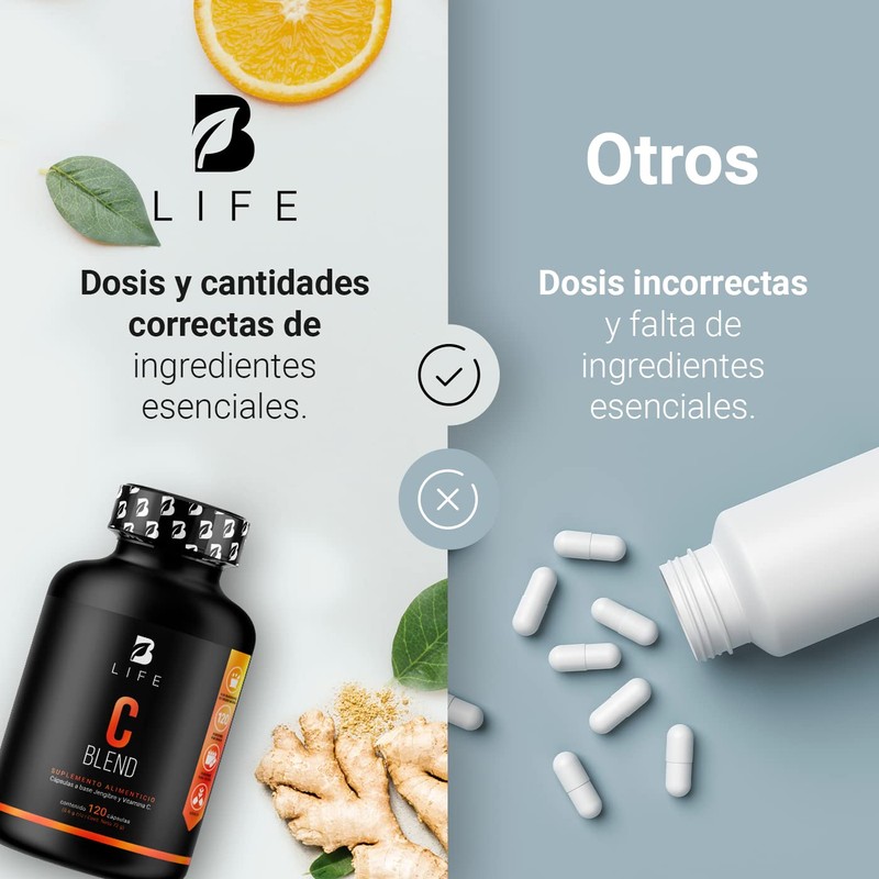 - C Blend B Life es un suplemento alimenticio con 120 cápsulas a base de Raíz de Jengibre y Vitamina C.