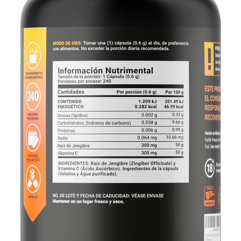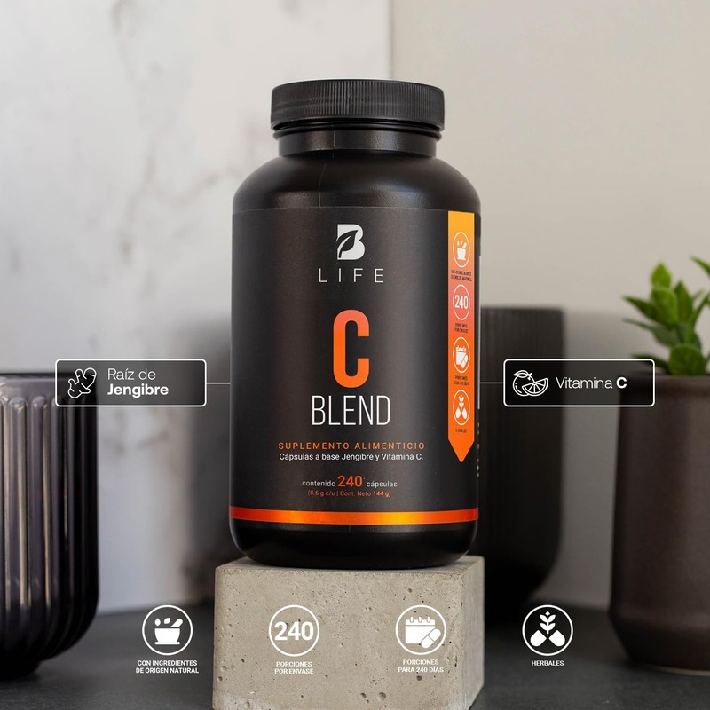 • Vitamina C+ B Life es un suplemento alimenticio 100% natural de la más alta calidad con 240 cápsulas a base de Raíz de Jengibre y Vitamina C. ¡GLUTEN FREE Y KETO FRIENDLY!