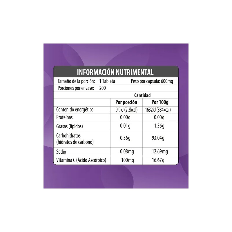200 Tabletas masticables de 600 mg de vitamina C cada una.